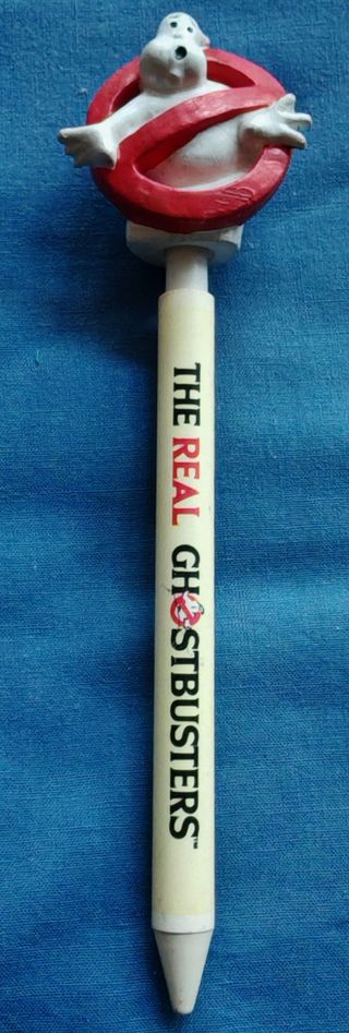 Vendo penna da collezione vintage del cartone animato "The Real Ghostbusters", prodotta nel 1984 dalla COLUMBIA. Presenta un logo 3D in cima raffigurante il fantasma iconico della serie. Il corpo della penna riporta il marchio "THE REAL GHOSTBUSTERS".