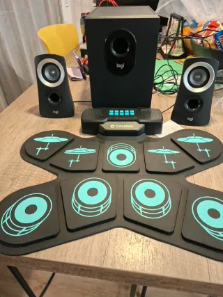 ⚠️COMBO 1️⃣Sistema di altoparlanti Logitech Z313 con suono bilanciato e 2️⃣ kit di batteria elettronica portatile. 1️⃣Altoparlanti satelliti compatti. ✅️Subwoofer per bassi profondi. ✅️Potenza totale di 50W. 2️⃣Kit batteria elettronica portatile. ✅️Ingresso AUX-IN/OUT ⛔️il piccolo Altoparlante della batteria non funziona
