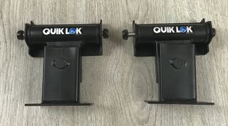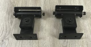 Coppia di supporti a muro per casse acustiche QuikLok. - Realizzati in metallo nero. - Design robusto e stabile.