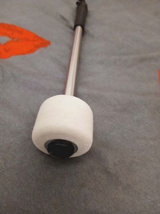 Mallet con asta in acciaio inossidabile e impugnatura ergonomica il feltro - Asta in acciaio inossidabile. 1 pezzo - Testa bianca. - Impugnatura nera. - Cordino nero. per timpani,piatti,casse ecc. misura lunghezza 33 cm