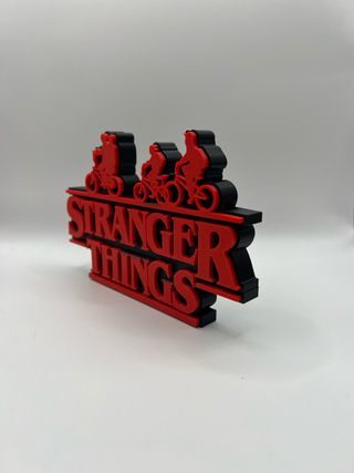 Decorazione a tema Stranger Things con il logo ufficiale e le sagome dei protagonisti in bici. Stampato in 3D con PLA rosso e nero, ideale da esporre su mensole e scrivanie. 📏 Dimensioni: 18,5 × 12 × 2 cm Perfetto come regalo per collezionisti e fan della serie Netflix. #strangerthings #stampa3d #serieTV #plaprint #decorazionecasa #art3d #geekstyle #fanart #designmoderno #homedecor #idearegalo