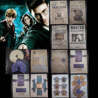 Bellissimo set di articoli da collezione di Harry Potter! Perfetto per fan o per decorare una stanza a tema. - Include giornali del Daily Prophet, biglietti per il binario 9 3/4 e per il Knight Bus, e modelli di macchina di Ron e del Knight Bus pronti per essere assemblati. - Gli articoli sono in ottime condizioni, come da foto. - Ideale per appassionati della saga.