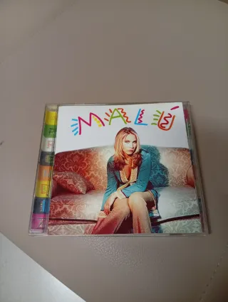 CD dell'artista Malú. - Copertina con design colorato. - Fotografia dell'artista seduta su un divano.