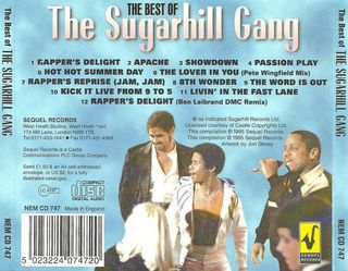 CD in ottime condizioni THE BEST OF SUGARHILL GANG 1995 1 Rapper's Delight 7:09 2 Apache 6:14 3 Showdown 5:41 4 Passion Play 5:11 5 Hot Hot Summer Day 6:13 6 The Lover In You (Pete Wingfield Mix) 6:47 7 Rapper's Reprise (Jam, Jam) 7:46 8 8th Wonder 7:31 9 The Word Is Out 5:42 10 Kick It Live From 9 To 5 6:33 11 Livin' In The Fast Lane 5:09 12 Rapper's Delight (Ben Leibrand DMC Remix) 7:05