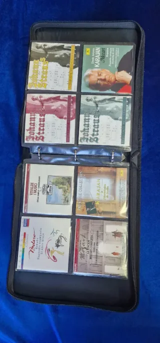 Ampia collezione di 55 CD di musica classica e opera, con registrazioni di direttori rinomati come Karajan. Include opere di compositori come Wagner, Mozart, Verdi, Puccini, tra gli altri. Diverse selezioni e opere complete. Raccolte di grandi classici. Etichette rinomate: Decca, Deutsche Grammophon, Philips, Warner Classics.