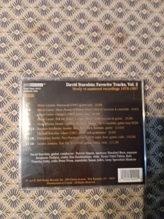 CD di musica classica Favorite Tracks Vol.2 di David Starobin. Include 20th Century Classics con chitarra. Presenta Patrick Mason al baritono. Etichetta discografica: BRIDGE RECORDS. Numero di catalogo: BRIDGE 9292.