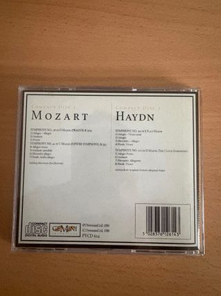 Questo set di 2 CD presenta opere di Mozart e Haydn, due grandi compositori di musica classica. Include sinfonie come la Praga (K. 504), Giove (K. 551) e la Sinfonia n. 99 e 101. Etichetta discografica Gemini.