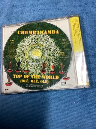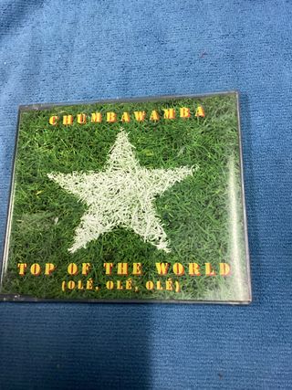 Singolo Top of the World dei Chumbawamba. - Copertina con design a tema calcistico. - Testo (Olé, Olé, Olé) presente sulla copertina.