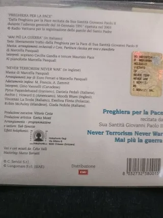 CD Preghiera per la Pace recitata da Sua Santità Giovanni Paolo II. - Titolo: Preghiera per la Pace - Artista: Giovanni Paolo II - Frase: Never Terrorism Never War - Mai più la guerra