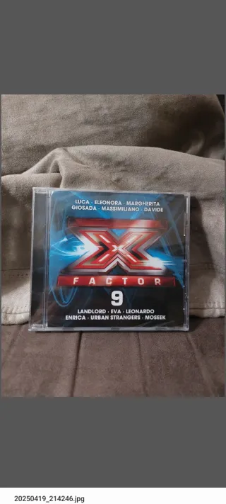 CD musicale di X Factor 9, ancora sigillato nella sua pellicola originale. - Copertina con logo X Factor 9. - Nomi degli artisti inclusi: Luca, Eleonora, Margherita, Giosada, Massimiliano, Davide, Landlord, Eva, Leonardo, Enrica, Urban Strangers, Moseek.