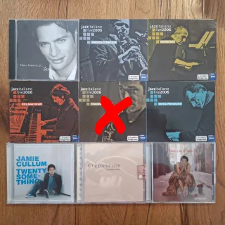 CD vari, musica Jazz. Usati, in ottime condizioni. Alcuni CD sono contrassegnati da un timbro "ex libris". Fino a 4 CD 7,5 euro l'uno; da 5 CD in poi 6,5 euro l'uno. CD doppi 11 euro. - Harry Connick jr, 30 - Stefano Di Battista, Live 2006 (laRepubblica) - Danilo Rea, Live 2006 (laRepubblica) - Rita Marcotulli, Live 2006 (laRepubblica) - Enrico Pieranunzi, Live 2006 (laRepubblica) - Jamie Cullum, Twenty something - Giuseppe Santini, Crepuscule - Madeleine Peyroux, Careless love - Madeleine Peyroux, Half the perfect world - Chet Baker, Chet (DeAgostini), 3 euro - Louis Armstrong, West end blues (DeAgostini), 3 euro