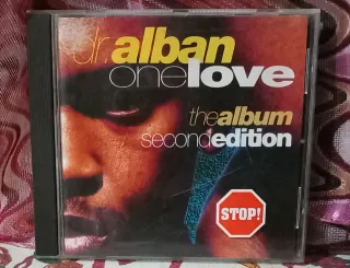 CD One Love - The Album Second Edition di Dr. Alban. - Copertina con il volto dell'artista. - Titolo One Love in bianco. - Sottotitolo the album second edition in giallo e bianco. - Presente un simbolo di stop rosso.