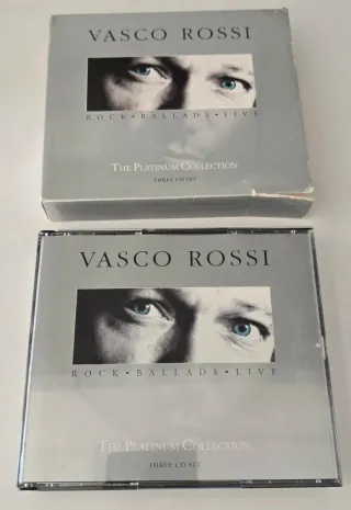 Cofanetto originale Vasco Rossi The Platinum Collection. - Include 3 CD. - Raccolta di successi live. Cofanetto originale Vasco Rossi – The Platinum Collection, 3 CD (Rock, Ballads, Live). Contiene una selezione completa dei brani più celebri di Vasco, suddivisi per genere: CD1 Rock CD2 Ballads CD3 Live Edizione EMI, cofanetto rigido + jewel case interni. Condizioni CD: in buone condizioni, normali segni d’uso, perfettamente leggibili Jewel case interni: buoni Cofanetto esterno: visibilmente usurato sui bordi e negli angoli (vedi foto), ma strutturalmente integro Ideale per ascolto, collezione personale o come idea regalo per fan