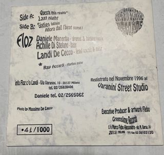 Vinile 7” - Floz -Questa mia realtà- tiratura limitata 41/1000 -Mint/Mint -Gruppo italiano garage/beat