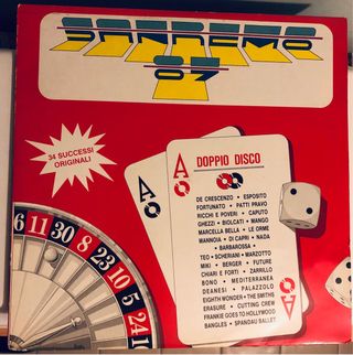 Sanremo '87: Compilation Ufficiale (Doppio LP Vinile Originale) In vendita la storica compilation ufficiale del Festival di Sanremo 1987, in formato doppio vinile originale. Un must-have per collezionisti e amanti della musica italiana e internazionale degli anni '80. Contiene 34 successi originali. Dettagli del Prodotto Formato: Doppio LP (Vinile 33 giri) Anno: 1987 Etichetta: Dischi Ricordi Artisti Principali: Include brani di Umberto Tozzi, Gianni Morandi, Enrico Ruggeri, Fiorella Mannoia, Mango, Patti Pravo, Ricchi e Poveri, The Smiths, Erasure, Spandau Ballet e molti altri. #Sanremo '87: Compilación Oficial (Doble LP Vinil