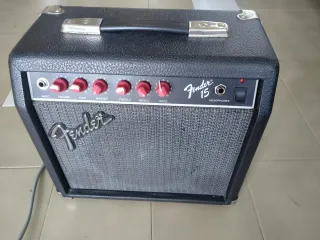 Amplificatore Fender 15 con manopole rosse