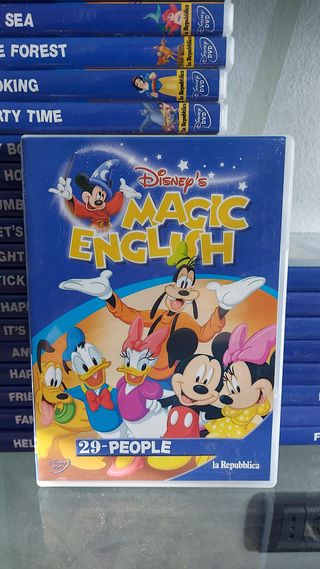 Collezione completa di 29 DVD Disney Magic English. - Serie educativa per imparare l'inglese con i personaggi Disney. - Include tutti i 29 volumi. - Copertina rigida con design a tema Disney.