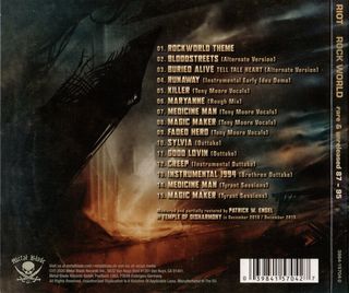RIOT – ROCK THE WORLD (RARE & UNRELEASED 87 – 95) 1 Rockworld Theme 2 Bloodstreets (Alternate Version) 3 Buried Alive (Tell Tale Heart) [Alternate Version] 4 Runaway (Instrumental Early Idea Demo) 5 Killer 6 Maryanne (Rough Mix) 7 Medicine Man 8 Magic Maker 9 Faded Hero 9 Sylvia (Outtake) 10 Good Lovin (Outtake) 11 Creep (Instrumental Outtake) 12 Instrumental 1994 (Brethren Outtake) 13 Medicine Man (Tyrant Sessions) 14 Magic Maker (Tyrant Sessions)4-panel Digipak Limited edition of 2.000 copies, issued in a 4-panel Digipak with clear tray and fold-out Poster Booklet. Condition as NEW.