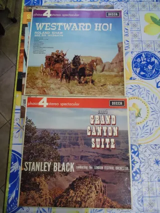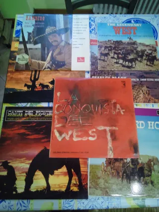 Set di vinili a tema western, perfetti per gli appassionati del genere. In tutto sono 7 vinili in buone condizioni, se interessati chiedete pure ulteriori informazioni e foto - Bandido con Tommy Arnett - The Legendary West - Canti dei Pionieri - La Conquista del West (Colonna Sonora Originale del Film)