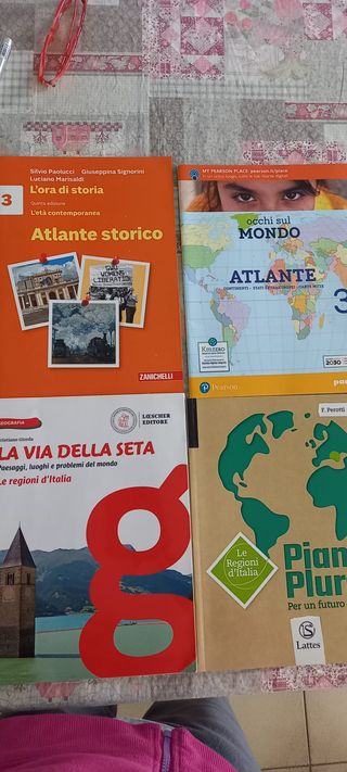 set 4 libri le regioni d'italia atlante stati extraeuropei e atlante storico come da foto