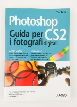 Photoshop CS2. Guida per i fotografi digitali Autore: Tip Grey Editore: Apogeo ISBN: 9788850324170 Anno edizione: 2005 Anno pubblicazione: 2005 Dati: XI-308 p., ill., brossura Caratteristiche particolari: Illustrato Dimensioni: Octavo edition (da 20A 28cm) DESCRIZIONE: Photoshop CS2 è già diventato un must tra i fotografi professionisti, un indispensabile strumento di lavoro. Ma non basta possedere uno strumento per poterlo utilizzare e garantirsi buoni risultati. Il libro è calibrato appunto per fornire ai fotografi le conoscenze per operare al meglio con la release CS2...
