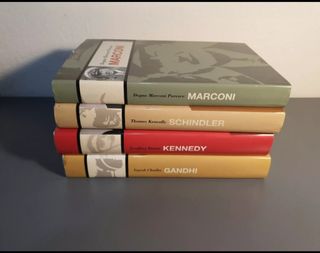 Biografie di Gandhi, Kennedy, Marconi e Schindler. Le biografie provengono da una raccolta della rivista famiglia cristiana. Sono tutti senza sottolineature o evidenziature. Ben tenuti e spedizione rapida Se richiesto posso anche venderli singolarmente