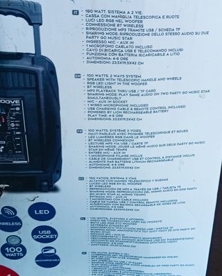 Cassa come nuova compresa di microfono e cavi ,con luci e scatola . Comoda come una valigia . I dettagli e le misure sono nelle foto