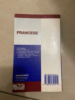 Lote di dizionari francese, italiano, spagnolo, guida di conversazione spagnolo-inglese, un'altra di inglese per studenti stranieri (questa è segnata, per l'uso) e un'altra di guida di conversazione francese. Sto traslocando e ho un mese per vendere ciò che metto su Wallapop. Vendita di persona o tramite spedizione. Non si accettano cambi. Altri articoli nel mio profilo. Per fare un ordine con più di un piccolo articolo posso fare un nuovo annuncio con quegli articoli e così pagare una volta le spese di spedizione. Contattatemi senza impegno.