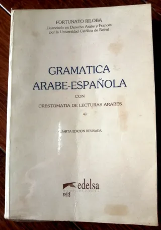 Grammatica Arabo-Spagnola con crestomazia di letture arabe. Autore Fortunato Riloba, laureato in diritto arabo e francese presso l'Università Cattolica di Beirut. Come è di copertina morbida, l'ho rivestito con plastica, quindi con il passare del tempo ha generato macchie di calore, come in foto. Interno in perfette condizioni. #lingua #filologia #studio