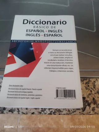 Libro usato "Dizionario di inglese per principianti", di VV. AA., Ed. SUSAETA, 2008, 128pp, in perfetto stato a 6€. Dettagli: formato tascabile, dimensioni 15 x 22 cm, 128 pagine, oltre 2000 parole, ISBN 978-84-305-6353-1. Contatto via telefono/SMS, Telegram o messaggi su Milanuncios/FB Marketplace. Accetto pagamenti in contanti, PayPal o Bizum.