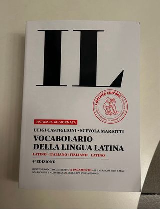 Dizionario Latino-Italiano Castiglioni Mariotti, 3a edizione Loescher. Usato, condizioni interne perfette, copertina un po' rovinata ma con un po' di scotch riparabile (al momento c'è sopra una foderina gialla un po' rovinata, comunque rimovibile). Ideale per studenti di liceo e università