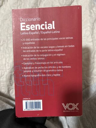 Dizionario latino-spagnolo, perfetto per gli studenti di discipline umanistiche. Ha le lettere incollate lateralmente per una migliore ricerca. Include un libretto di grammatica latina.