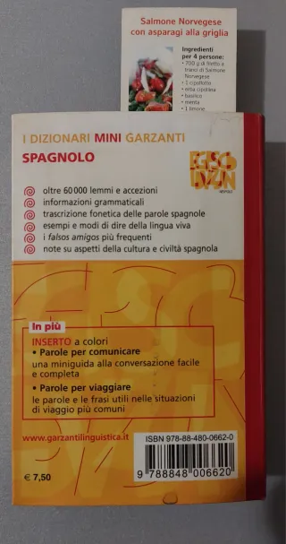 Dizionario piccolo Garzanti spagnolo italiano Difetti in foto