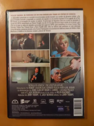 Film Intriga en Venecia in formato DVD. - Basato sul bestseller di Hellen MacInnes. - Interpretato da Robert Vaughn, Elke Sommer, Boris Karloff e altri. - Sceneggiatura di E. Jack Neuman. - Regia di Jerry Thorpe.