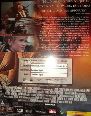 Film Master & Commander: Al otro lado del mundo in formato DVD. Titolo originale: Master & Commander. Lingua: Spagnolo.