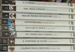 Collezione di 8 DVD di grandi classici del cinema italiano. - Il Portiere di Notte - Mediterraneo - Per un pugno di dollari - Ieri, oggi, domani - Un americano a Roma - Signori si nasce - L'albero degli zoccoli - Il postino