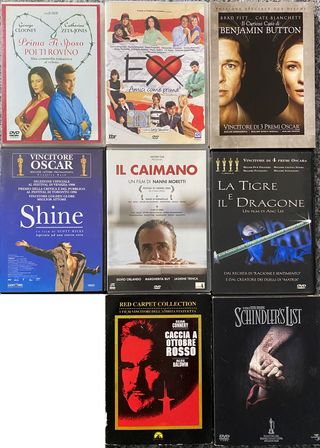 Lotto di 8 DVD di film in lingua italiana e inglese. - Prima Ti Sposo Poi Ti Rovino - Ex - Amici come prima! - Il Curioso Caso di Benjamin Button - Shine - Il Caimano - La Tigre e il Dragone - Caccia a Ottobre Rosso - Schindler's List