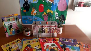 Bellissima Collezione della serie de La Famiglia dei Barbapapà. Nata agli inizi degli anni 70 come serie di libri e racconti per bambini ,fu subito pubblicata in Francia per poi divenire prima una serie di fumetti e poi una fortunata serie di cartoni animati, esportata in tutto il mondo tradotta in oltre 30 lingue. Seppur indirizzato ad un pubblico infantile, le storie dei Barbapapà affrontano temi complessi come la Diversità e l'Ecologia. La Collezione non è completa, mancano 8 volumi sui 30 complessivi, è composta da 22 DVD di 5 cartoni animati + giochi 22 Fascicoli di storie a Fumetti 4 Miniature di alcuni personaggi 1 Poster