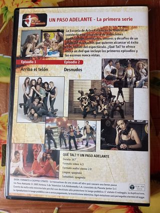 Dvd "Un Paso Adelante - Primera Serie". Serie tv - Edizioni Antena 3 De Agostini 2006 - Durata 1 ora e 23 minuti circa. Il Dvd contiene i primi due episodi della prima serie del Telefilm in Edizione Spagnola (Audio e sottotitoli solo in Spagnolo) Episodi 1 Arriba el telón 2 Desnudos DVD visto un paio di volte e perfettamente conservato. #dvd #unpasoadelante #serietv #spagnolo #deagostini