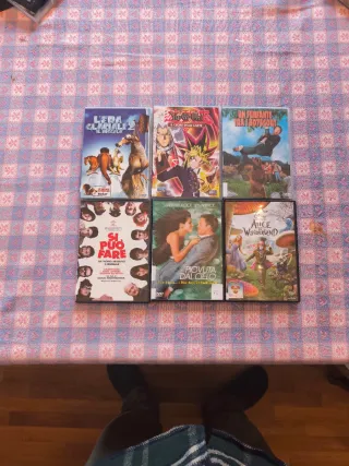 Lotto di 6 DVD riportati in foto: Era glaciale 2 il Disgelo, Si Può Fare, Piovuta dal cielo, Alice nel paese delle meraviglie, Yu gi oh il cuore delle carte e Un furfante tra i boyscout. Il prezzo per un singolo DVD è 8 euro!
