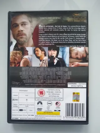 DVD del film Babel, diretto da Alejandro González Iñárritu. - Con Brad Pitt, Cate Blanchett, Gael García Bernal e Rinko Kikuchi. - Vincitore di premi come Academy Award, BAFTA e Golden Globe. - A powerful and brilliantly made film.