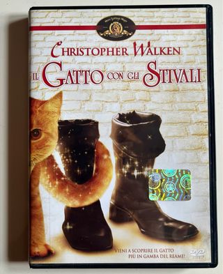 Vendo DVD del film "Il Gatto con gli Stivali" (Puss in Boots) del 1988, con protagonista il leggendario Christopher Walken nel ruolo del gatto. Edizione distribuita da Hobby & Work. Un classico del cinema fantasy per ragazzi e per collezionisti del genere Cannon Movie Tales. • Condizioni: Ottime, disco senza graffi / Come nuovo • Lingua: Italiano e Inglese • Contenuti: Film completo + menu interattivo. • Note: Custodia originale integra completo di opuscolo integro.