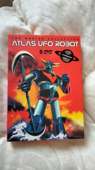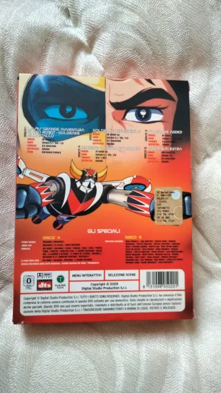 Box set completo di Jeeg Robot in DVD, un classico dell'animazione. - 5 DVD inclusi. - Contiene film e contenuti speciali. - Include 4 cartoline e un libretto a colori.