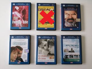 5 DVD (con all'interno brochure con trama e recensione) Family Life, Kolya, Casomai, Le chiavi di casa, Into the wild. 2 euro cad oppure 10 euro per tutti e sei