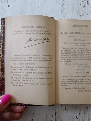 Riflessioni e preghiere Antico libro religioso pour la sainte communion 1897 Pagine 776+18 Formato cm 11,5x16 in lingua francese Immagine segna libro S. Petrus 1946.