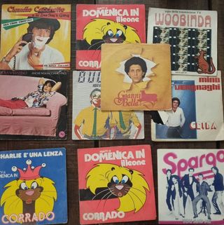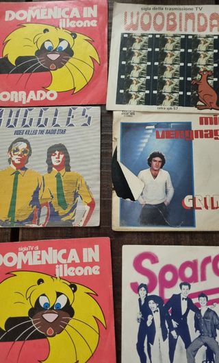 Set 11 vinili 45 giri Lp di cui solo 1 senza custodia. Condizioni buone, un po impolverati essendo stati per tanti anni in solaio. Il prezzo è per l'intero lotto, preferisco venderli insieme. -disco France "Mio vecchio zoppo" -Spargo "you and me" - Corrado il leone - Viola Valentino - Gianni Bella - Mino Mergnaghi - Riccardo Zara -Claudio Cecchetto -Buggles