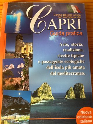 Guida pratica dell'isola di Capri, che include le seguenti informazioni: Cartina dell'isola inclusa con informazioni utili. Contenuti su arte, storia, tradizione, ricette tipiche e passeggiate ecologiche. Descrizione come "l'isola più amata del mediterraneo". Nuova edizione italiana.