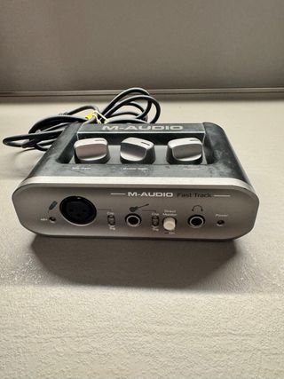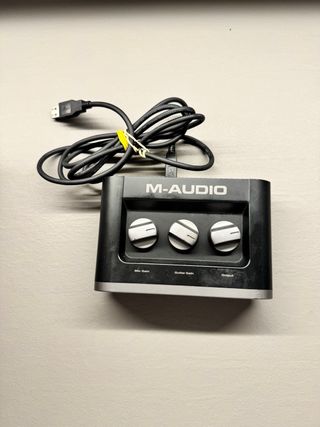 Interfaccia audio M-Audio con connessione USB. Dispone di controlli per gain e output. - Controlli: Mic Gain, Guitar Gain, Output. - Connessione: USB.