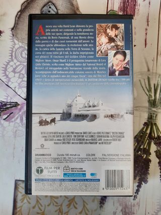 VHS : Il Dottor Zivago IL DOTTOR ZIVAGO Regia di DAVID LEAN Cast : GERALDINE CHAPLIN, JULIE CHRISTIE, TOM COURTENAY ,ALEC GUINNESS, SIOBHAN McKENNA, RALPH RICHARDSON & OMAR SHARIF Durata 185 minuti circa DRAMMATICO - FILM PER TUTTI Il dottor Živago (Doctor Zhivago) è un film del 1965 diretto da David Lean, con Omar Sharif, Julie Christie e Geraldine Chaplin. Tratto dall'omonimo romanzo di Boris Pasternak, fu presentato al 19º Festival di Cannes. Vinse cinque Golden Globe e cinque Oscar, tra cui quello per la musica con il celebre Tema di Lara di Maurice Jarre, che vendette centinaia di migliaia di copie.