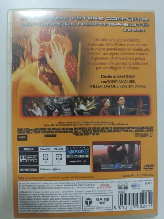 DVD del film Spider-Man. - Genere d'azione e avventura, fantasy. - Lingue: inglese, italiano.